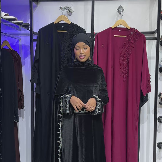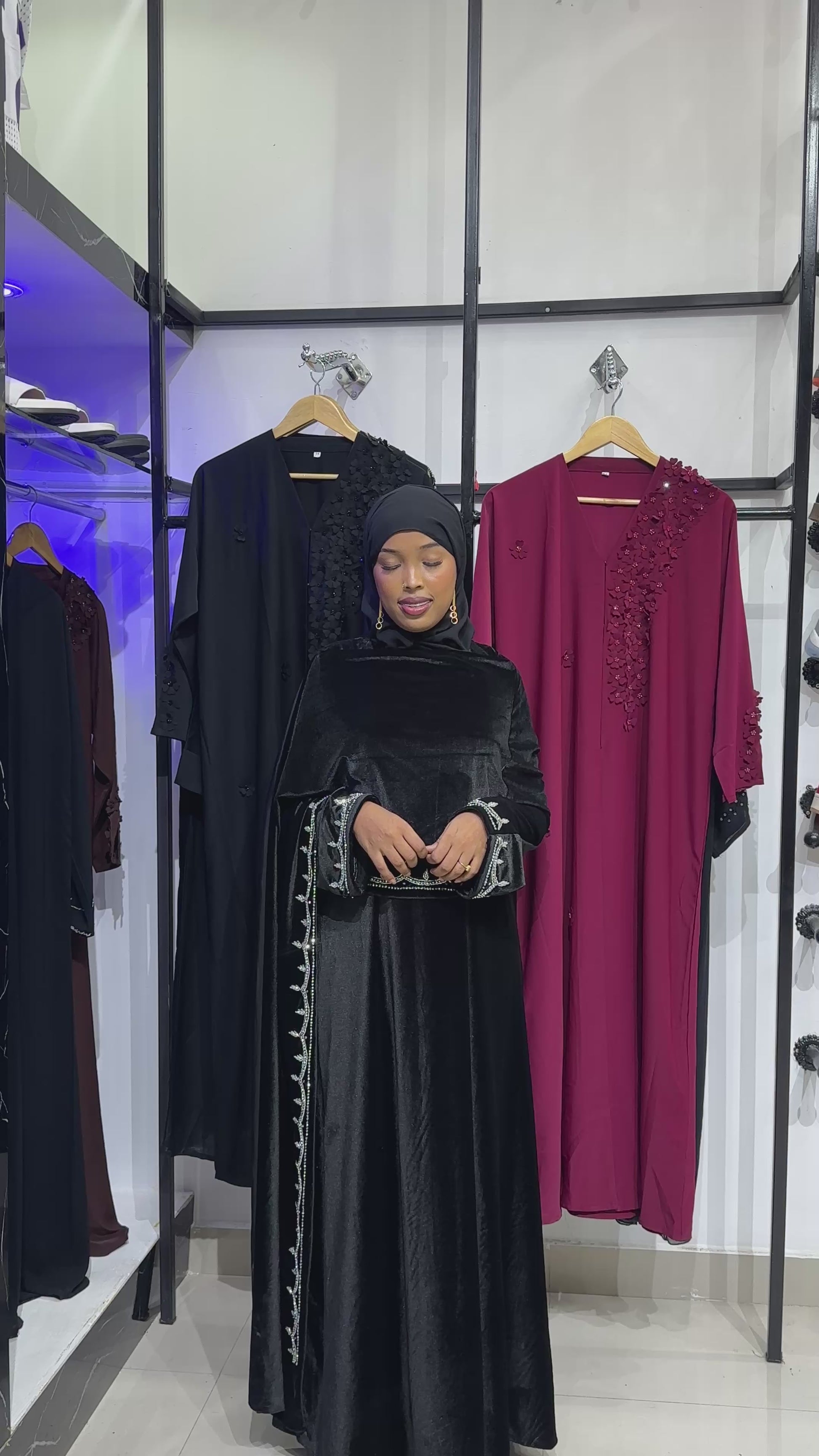 The VIP velvet abaya is crafted from premium velvet fabric, ensuring a luxurious feel and appearance. Its elegant design is complemented by a matching hijab, providing a cohesive and sophisticated look suitable for formal occasions. This garment combines style with comfort, making it an ideal choice for discerning individuals.